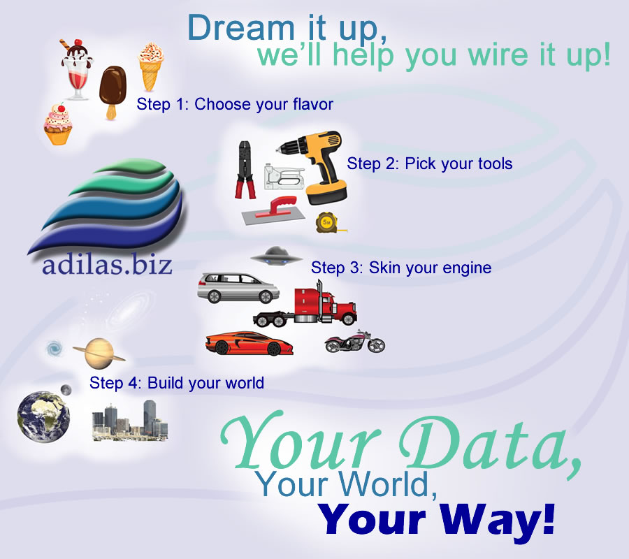 The existing adilas.biz map is just a graphic with a number of temporary buttons overlaid to show the concept of where we are going. Once the project goes live, the interface will be interactive and built on the Adobe Flash platform. It will be fed by live data, user permissions, corp-wide settings (custom names and settings), etc. It will be pretty cool.